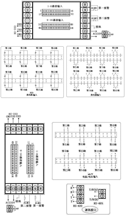| 2、可選擇統(tǒng)一報(bào)警輸出,分別報(bào)警輸出或分別變送輸出。 |